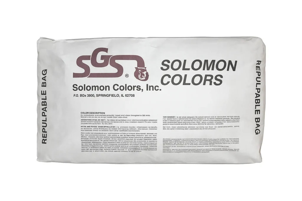 Solomon Dry Integral colors provide you with consistent color from batch to batch. Solomon dry pigments offer the ready mix producer a cost-effective way to color ready mix concrete. Solomon Dry Integral colors produce the uniform and consistent color you need for your project. It is available in 25 lb. bags or 6.25 lb bags.